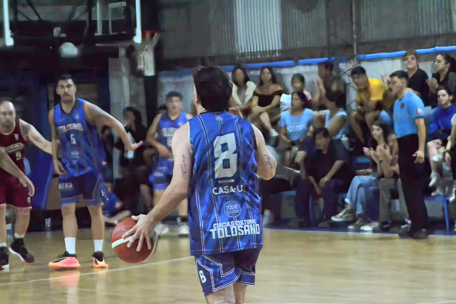 En el amanecer del encuentro Iñaki López sacudió la red tres lugares para poner a su equipo adelante, luego quedó anestesiado el tablero hasta los tres minutos en dónde el anfitrión descontó. El juego levantó vuelo y la visita se puso al frente (8-5) ante un rival que le costó llegar al canasto. Tolosano, con mucha intensidad defensiva, intentó recuperar el control y no encontró la manera. El Rojo jugó mejor, con un bombazo de López en el final, y de esta forma se llevó el cuarto 20 a 14.
