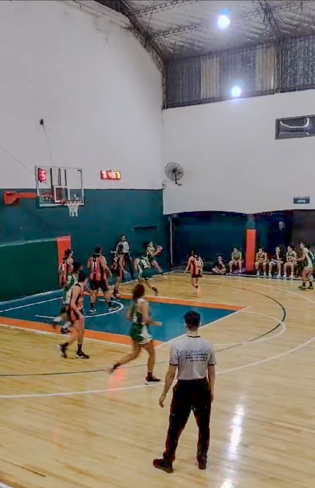 Dejando atrás un deslucido primer cuarto, el Hogar salió con todo en el segundo, llegando a acercarse a cuatro puntos de su rival, con ayuda de los triples de Elias, Ipolitti y Da Palma (figura de las locales con 16 puntos) que enloquecían a la hinchada verde. Aunque permitieron muchos tiros de larga distancia, que le ajustaron el marcador, la visita se mantuvo arriba y cerró el cuarto 29 a 25 a su favor (parcial de 16-12).